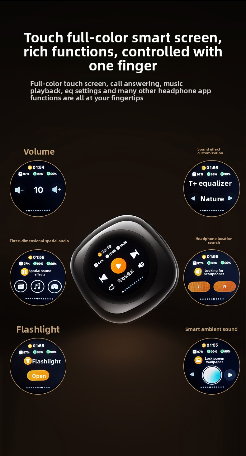 Features: Microphone support, touch controls, IPX5 water resistance (inferred from product context), dual-effect directional sound transmission